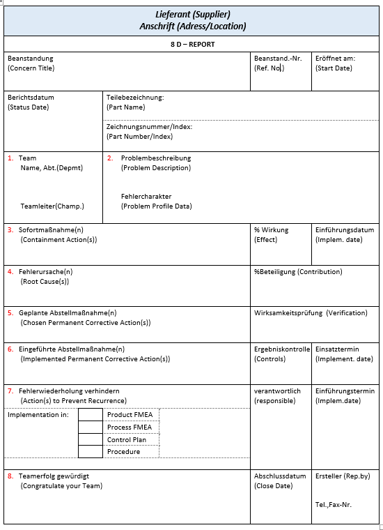 Als Methodik zur systematischen Bearbeitung von komplexen Aufgabenstellungen und damit zur Verbesserung der Leistungen einer Organisation hat sich in der Praxis die 8D-Methode bewährt [1] [2].