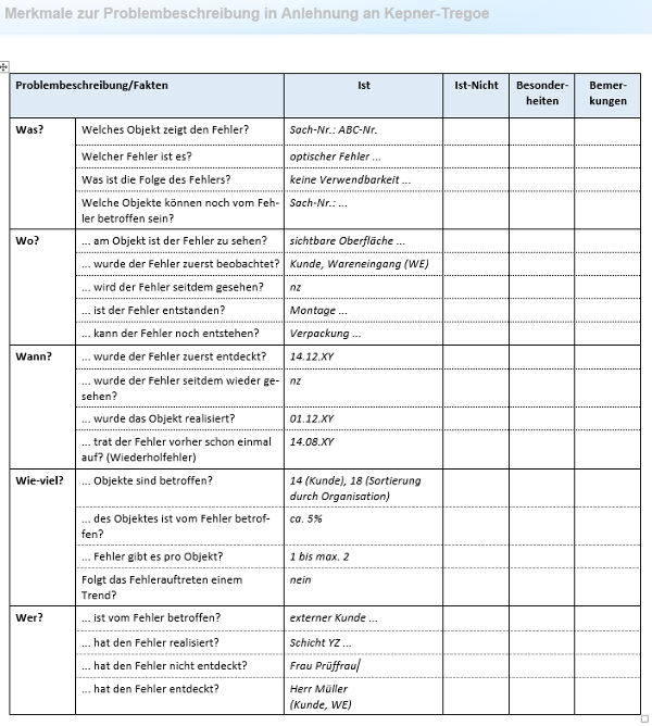 Sie liefert, ggf. mit leichter Modifikation, den Ablaufrahmen zur professionellen Behandlung von komplexen Aufgabenstellungen, z. B. im Rahmen von Projekten aller Art, Beschwerden/Reklamationen, Auditfeststellungen oder auch Schadensfällen.