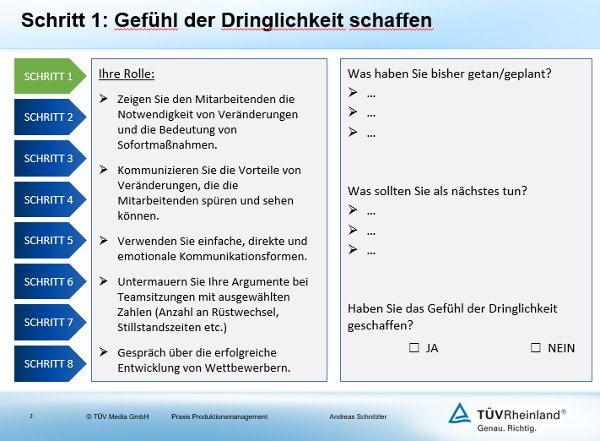 Steigender Kostendruck, globale Vernetzungen und geringere Markteintrittsbarrieren verschärfen den Wettbewerb. Kontinuierliche Veränderungsprozesse sind notwendig, um Prozesse zu optimieren, die Unternehmenskultur anzupassen und wettbewerbsfähig zu bleiben. Dazu werden Change-Management-Prozesse und komplexe Produktionsmanagementsysteme verwendet. ·