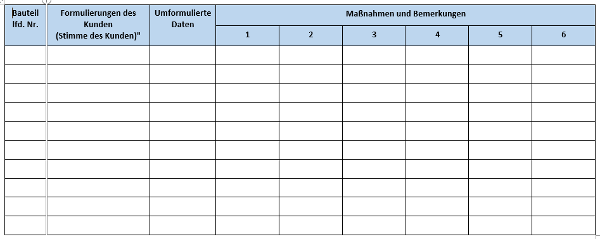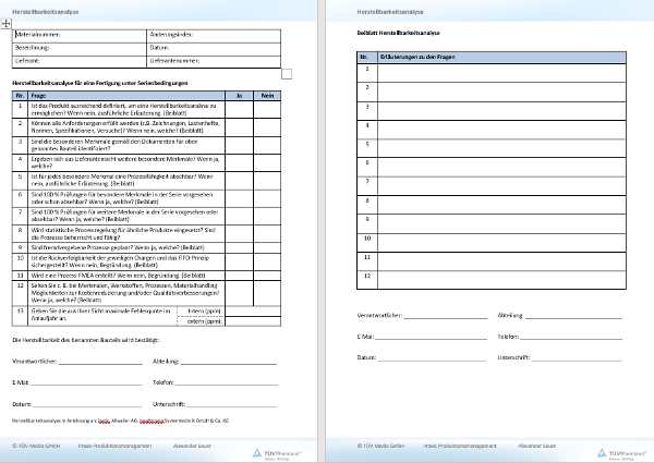 Das Formular zur Herstellbarkeitsanalyse finden Sie im beigefügten Word-Dokument.[