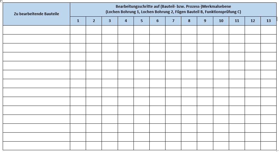 Darüber hinaus kann auf interne Kennwerte bestehender Fertigungsprozesse für ähnliche Produkte zurückgegriffen werden, bei denen beispielsweise bereits SPC-Analysen durchgeführt werden bzw. Ausschussstatistiken, Produktionslenkungs- oder Prüfpläne vorliegen. Zusätzlich können die Fertigungsplaner hinsichtlich ihrer Erfahrung bei der Planung ähnlicher Fertigungsprozesse befragt werden.