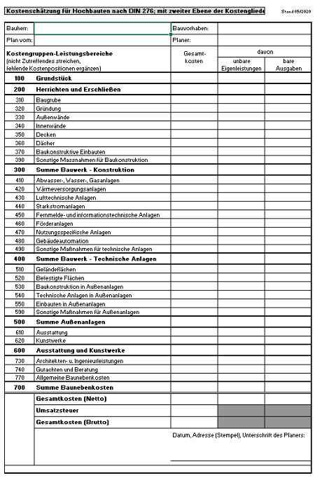 | • | erste Kostenschätzungen, |